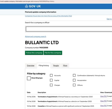 Clear evidence exposing the scam activities. Shows that he has removed his company access and removed him from director shiop